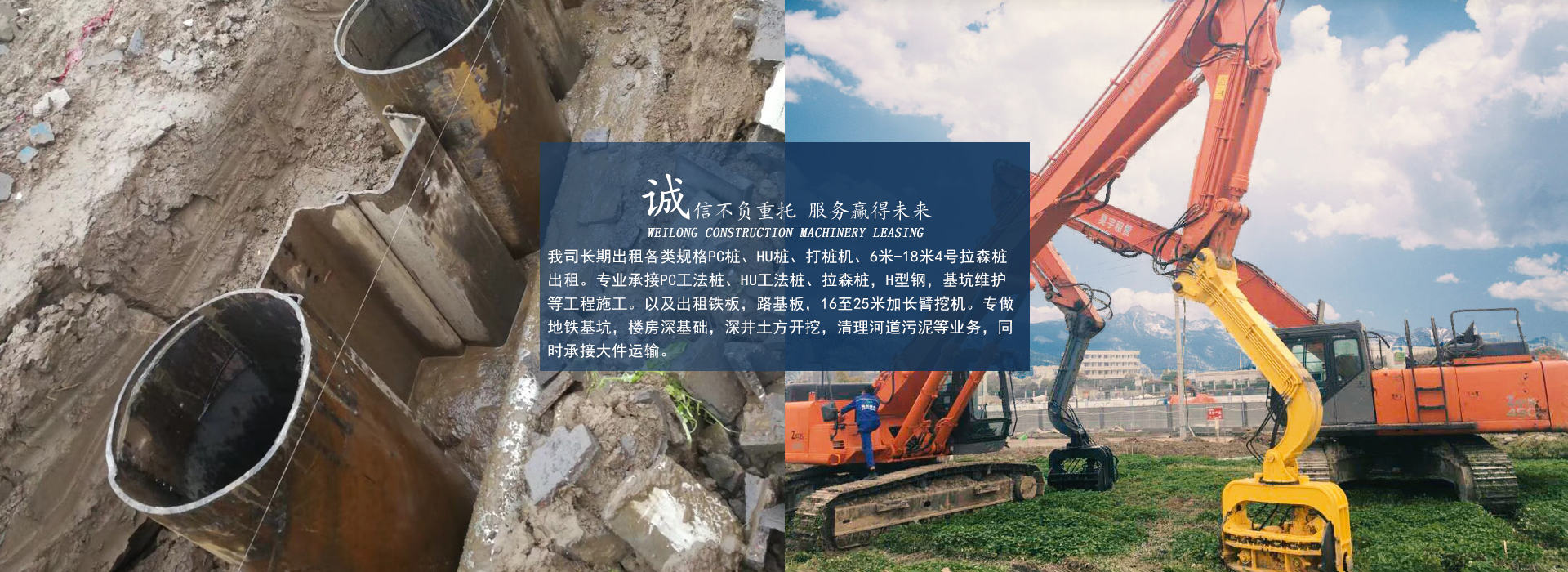 杭州偉龍工程機械設備租賃有限公司主要經營各類規格拉森樁租賃、PC工法樁出租、長臂挖機租賃和平板車租賃等服務